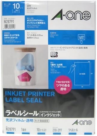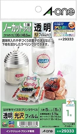 amazon エーワン ラベルシール 光沢フィルム 透明 ノーカット 10枚 28791 ラベル用紙 文房具 オフィス用品