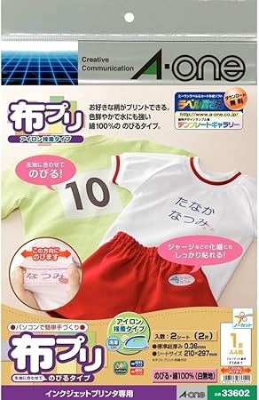 amazon エーワン お名前シール 布プリ のびるタイプ アイロン接着 a4 ノーカット 2シート 33602 ラベル用紙 文房具 オフィス用品
