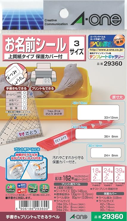 はがきサイズ 3種類 エーワン プリンタラベル 洗えるお名前シール 18面 24面 39面 29546 水に強い光沢白無地フィルムタイプ 保護カバー付 a one