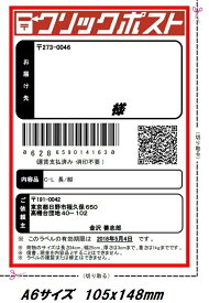 クリックポスト ラベルシール a6 105mm 148mm 100枚 1袋 インクジェット レザー対応