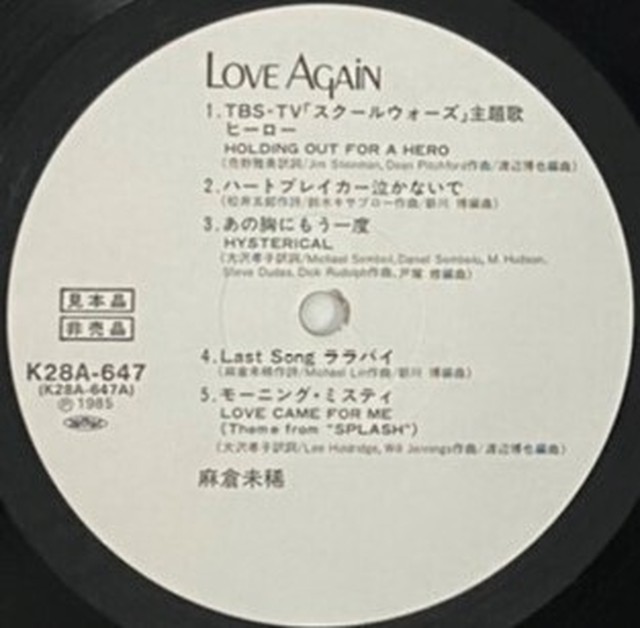 00528i 見本盤 7inch 麻倉未稀 ヒーロー 横須賀 break dance k07s 653 holding out for a hero スクールウォーズ サンプル 非売品