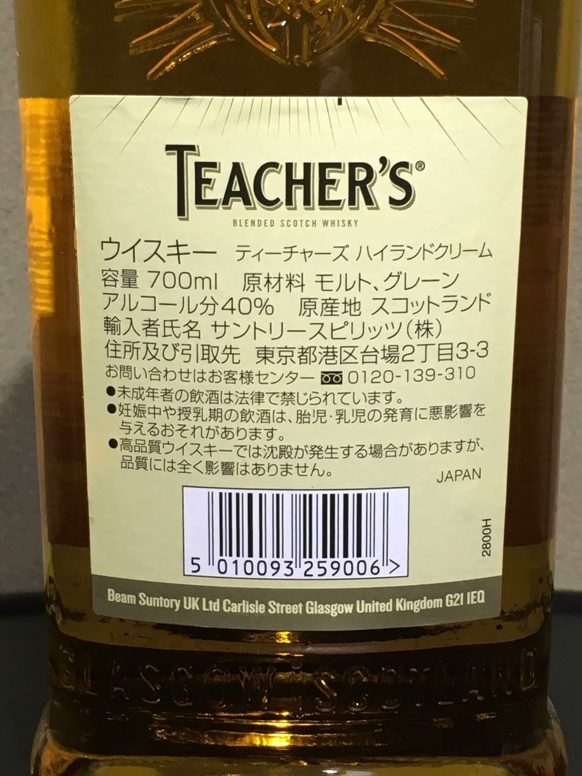 ティーチャーズ ハイランドクリーム旧ボトル43度750ml 酒のはせがわ