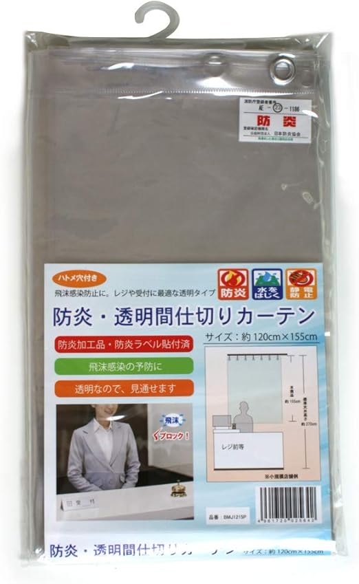 透明ビニールカーテン 防炎加工 ラベル付き 透明間仕切りカーテン 飛沫防止 コロナ対策 レジ 受付用 約120cm 155cm