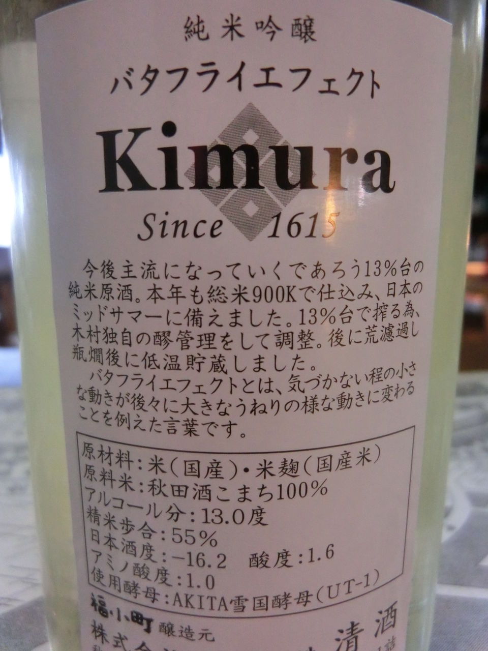 純米吟醸バタフライエフェクト 秋田県 木村酒造 第109酒 美味しい日本酒を飲むブログ