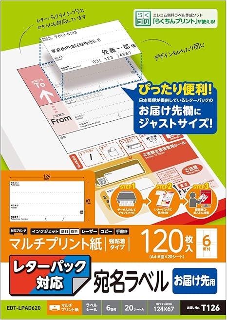 エレコム ラベルシール レターパック対応 お届け先ラベル 120枚 a4 20シート 6面 edt lpad620