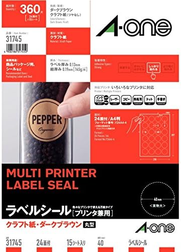 クラフト紙ラベル 兼用 a4 丸型24面 15枚 31745