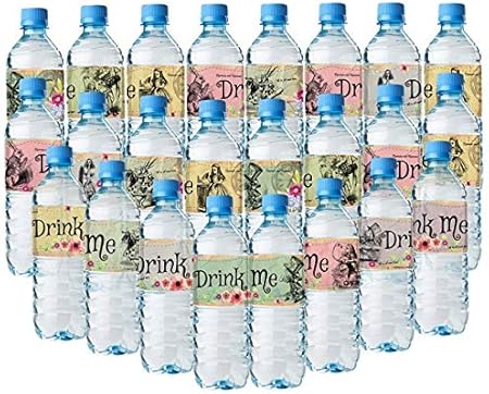 不思議の国のアリス ボトルラップ 24個のアリスウォーターボトルラベル 8種類の素晴らしいレイアウト