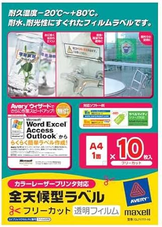 日立マクセル カラーレーザープリンタ対応 全天候型ラベル 透明 フリーカット10枚 cl71777 10