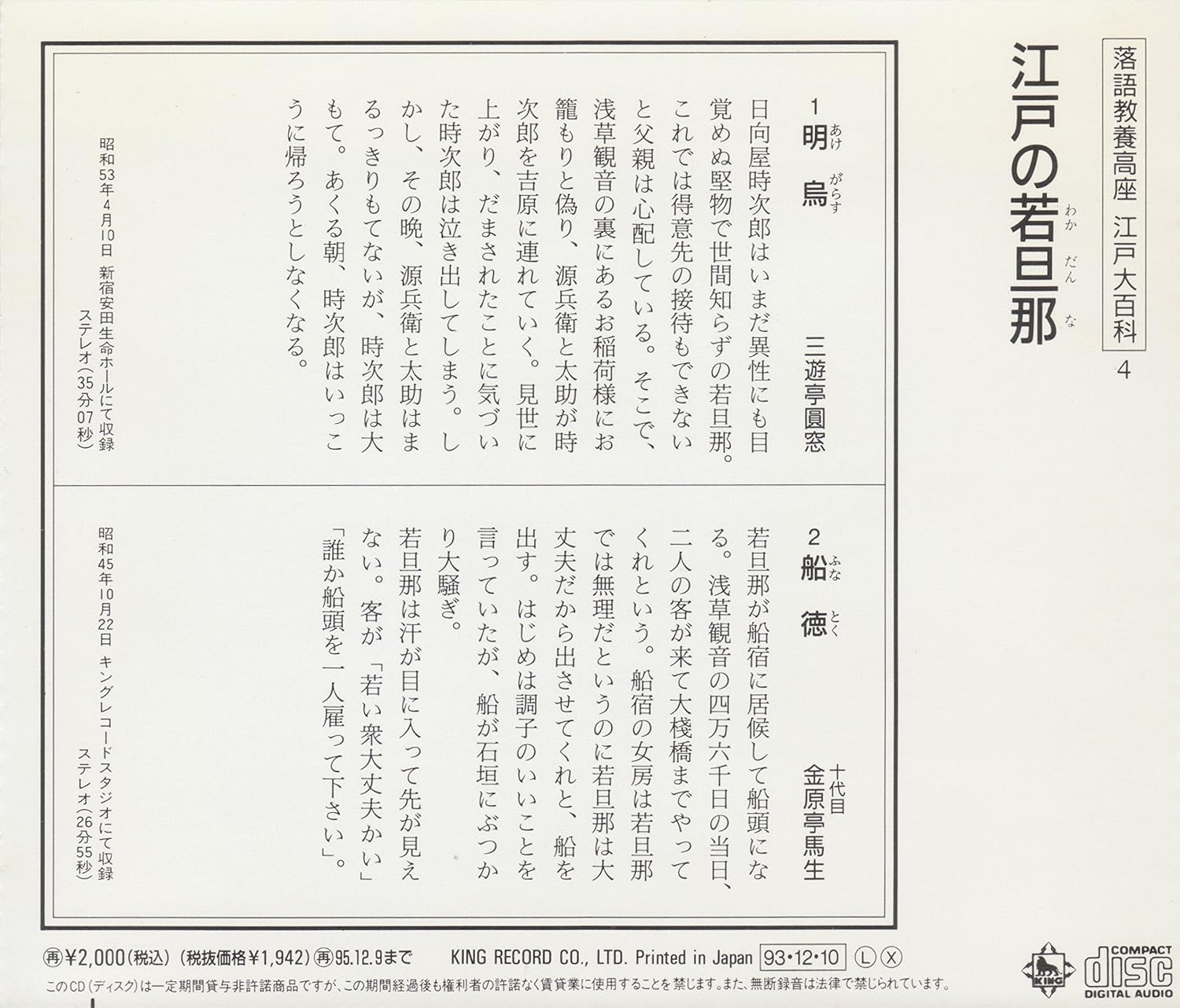 落語名人会 1 古今亭志ん朝 1 明烏 船徳