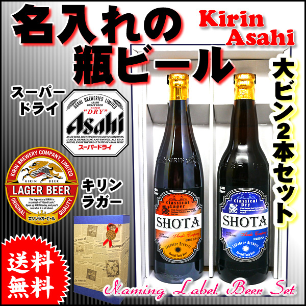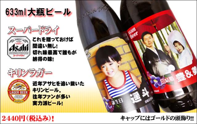 写真 名入れのビール 大瓶 オリジナルラベル asahiスーパードライ kirinラガー大ビン 父の日 誕生日 還暦 内祝い 結婚祝い