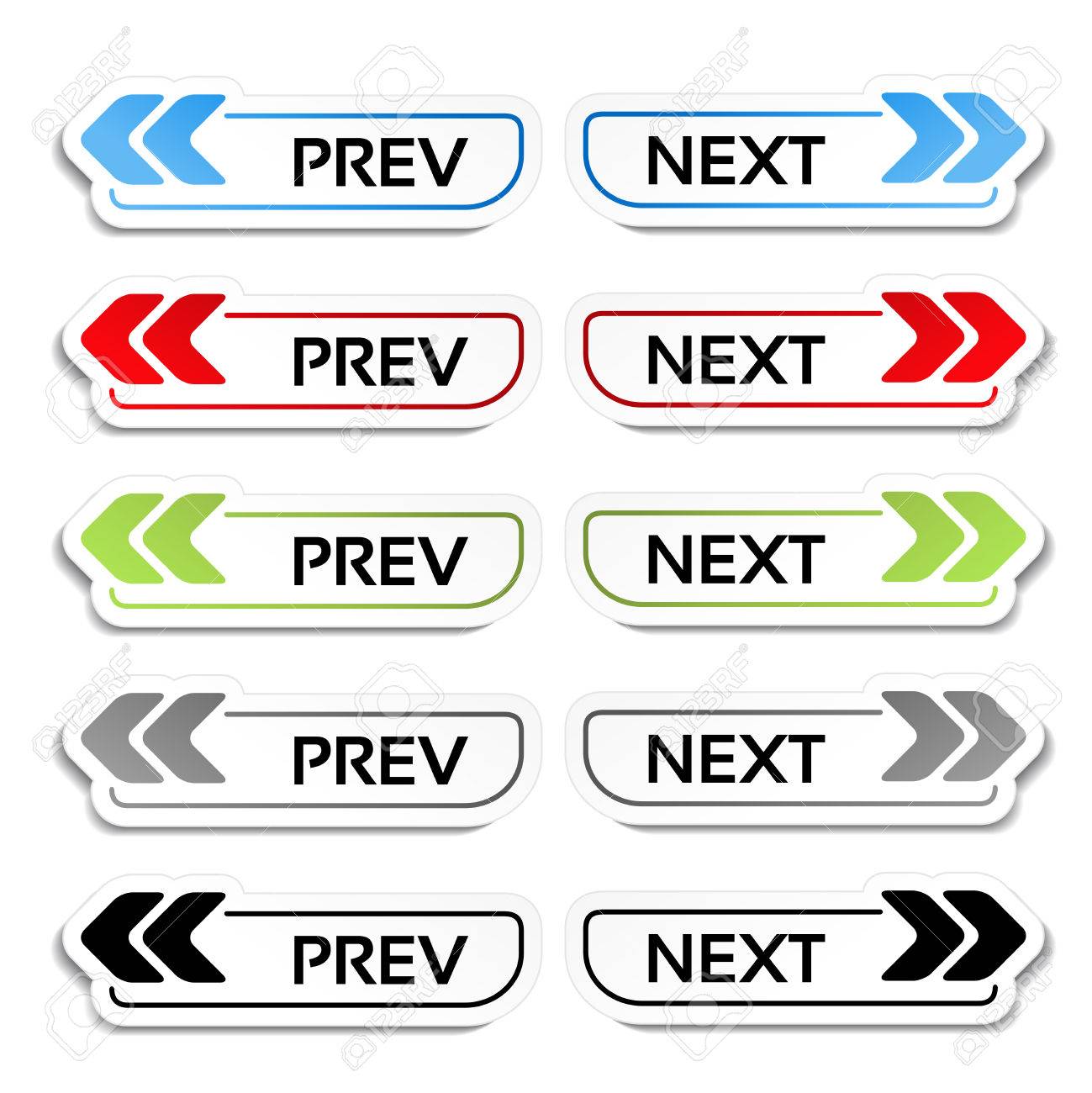 ベクトル前のページ 次ボタン矢印 ラベル 白い背景の上のステッカー イラスト