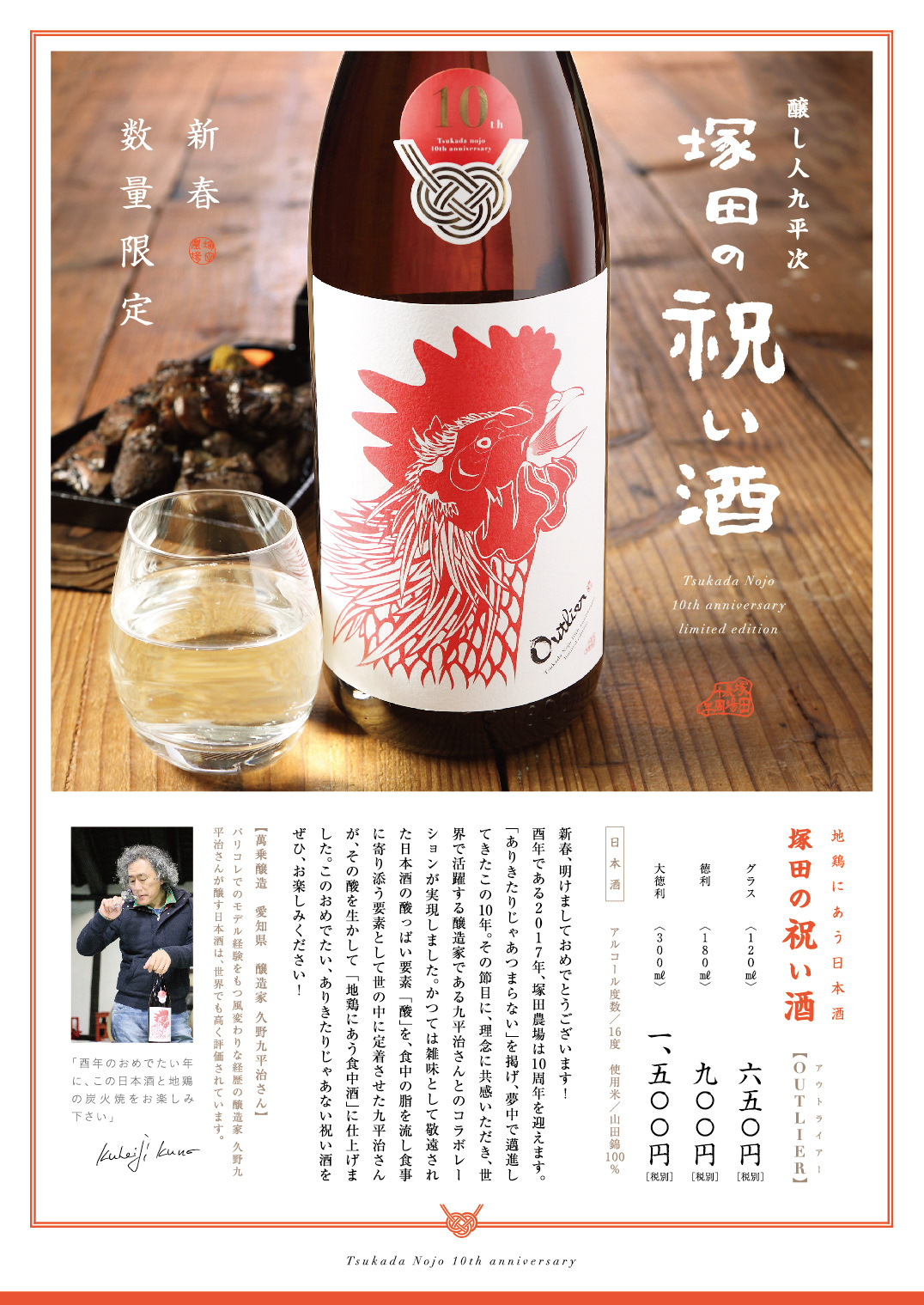醸し人九平次の outlier を2017年酉年元旦より塚田農場で発売九平次最後のpb商品を塚田農場で堪能する 塚田の祝い酒 aphdのプレスリリース