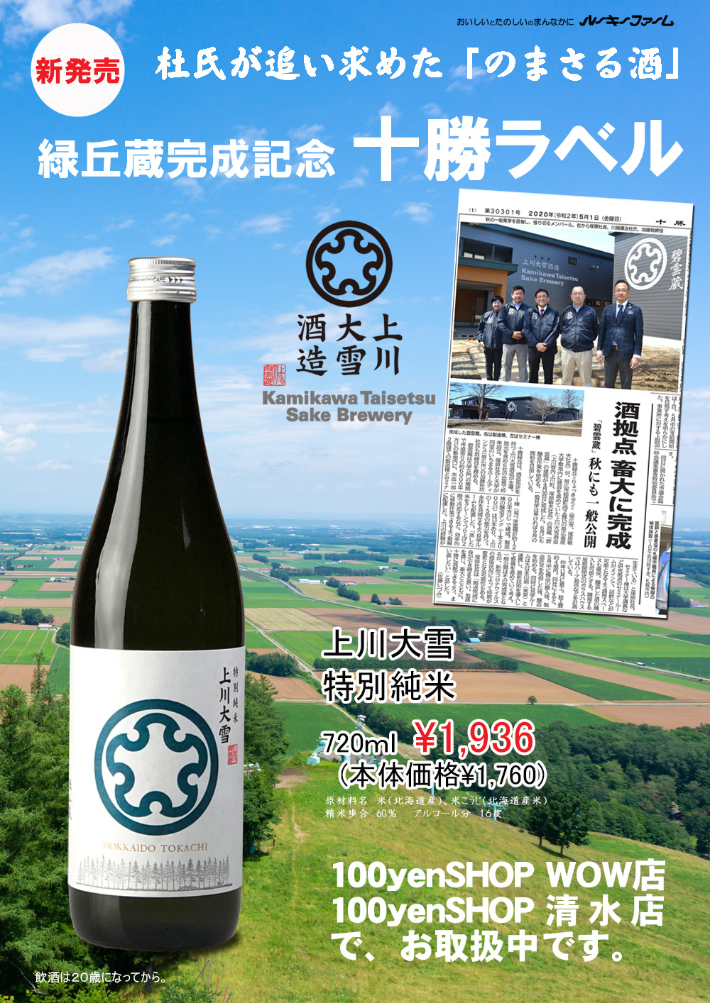 上川大雪 特別純米 十勝限定ラベル が発売されました ルーキーファーム