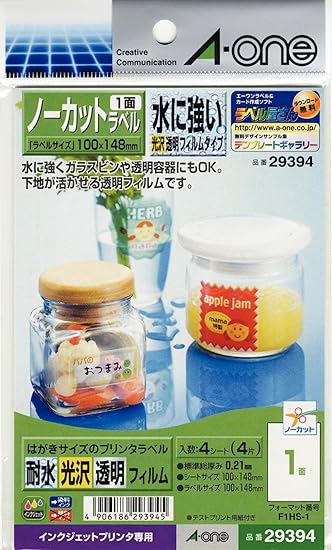 ラベルシール インクジェット 超耐水タイプ光沢フィルム 透明 やや乳白色