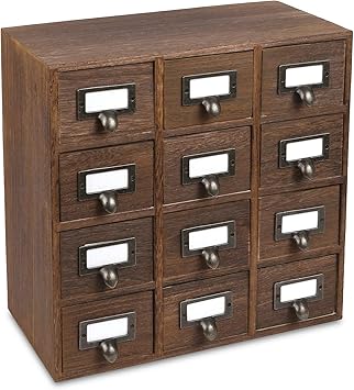 amazon ikee design 木製収納薬棚 引き出し デスクトップオーガナイザー メタルラベルホルダー付き デスクトップオーガナイザー 引き出し12個 ブラウンカラー 幅12 1 2インチ x 奥行き6 5 8インチ x 高さ12 7 8インチ 引き出し仕切り トレー 文房具 オフィス用品