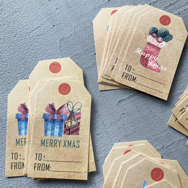 クリスマス to from アソート 紙タグ45枚と赤紐set クラフト紙 クラフト 台紙 ラッピング用品ギフト ラベル ペーパータグお返し プレゼント ギフト クリスマス merry christmas diy kufuu