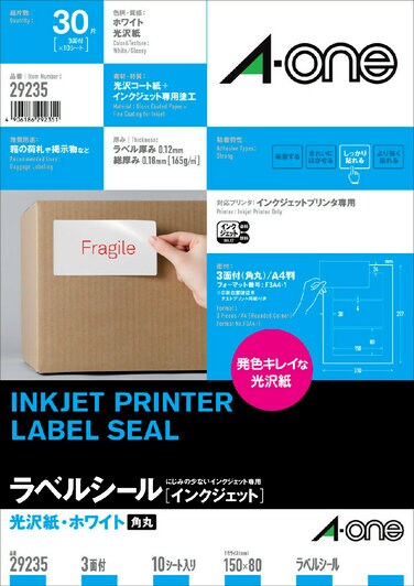 ラベルシールインクジェット専用 光沢紙ラベル