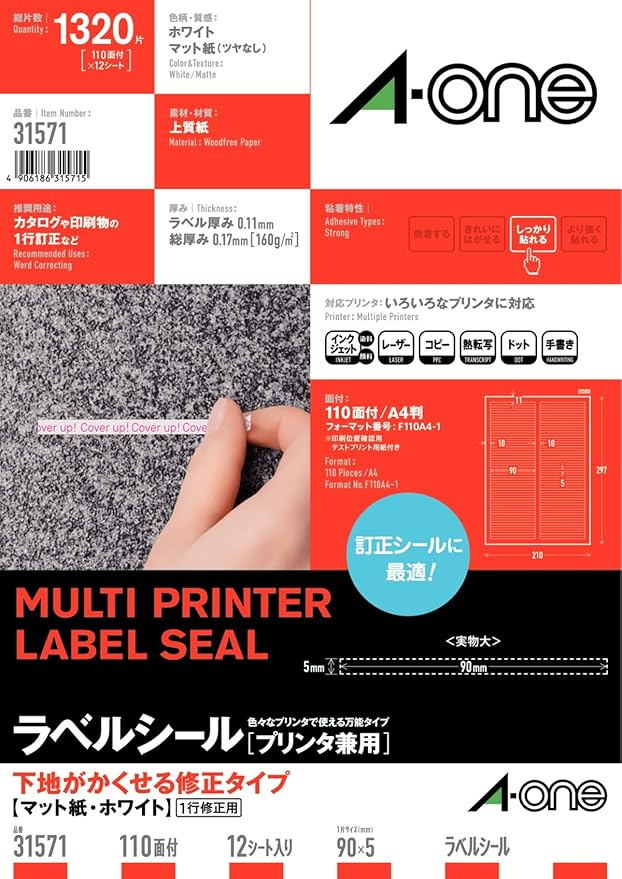 ラベルシールプリンタ兼用 マット紙ラベル 下地がかくせる修正タイプ