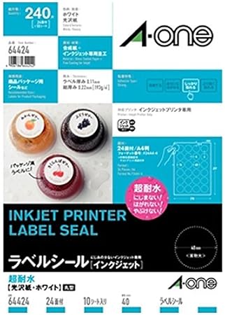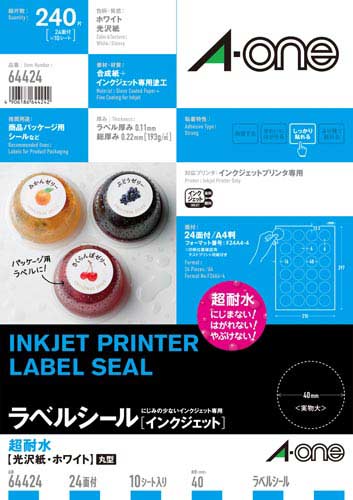 ラベルシール インクジェット 超耐水タイプ光沢紙 丸型 a4判 24面 10シート 240片 64424