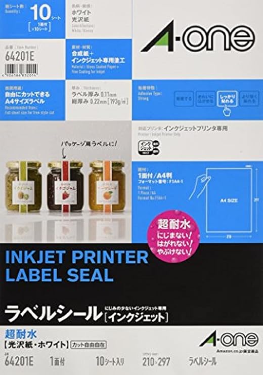 amazon co jp エーワン ラベルシール 光沢紙 インクジェット a4 ノーカット 50シート 28692 文房具 オフィス用品