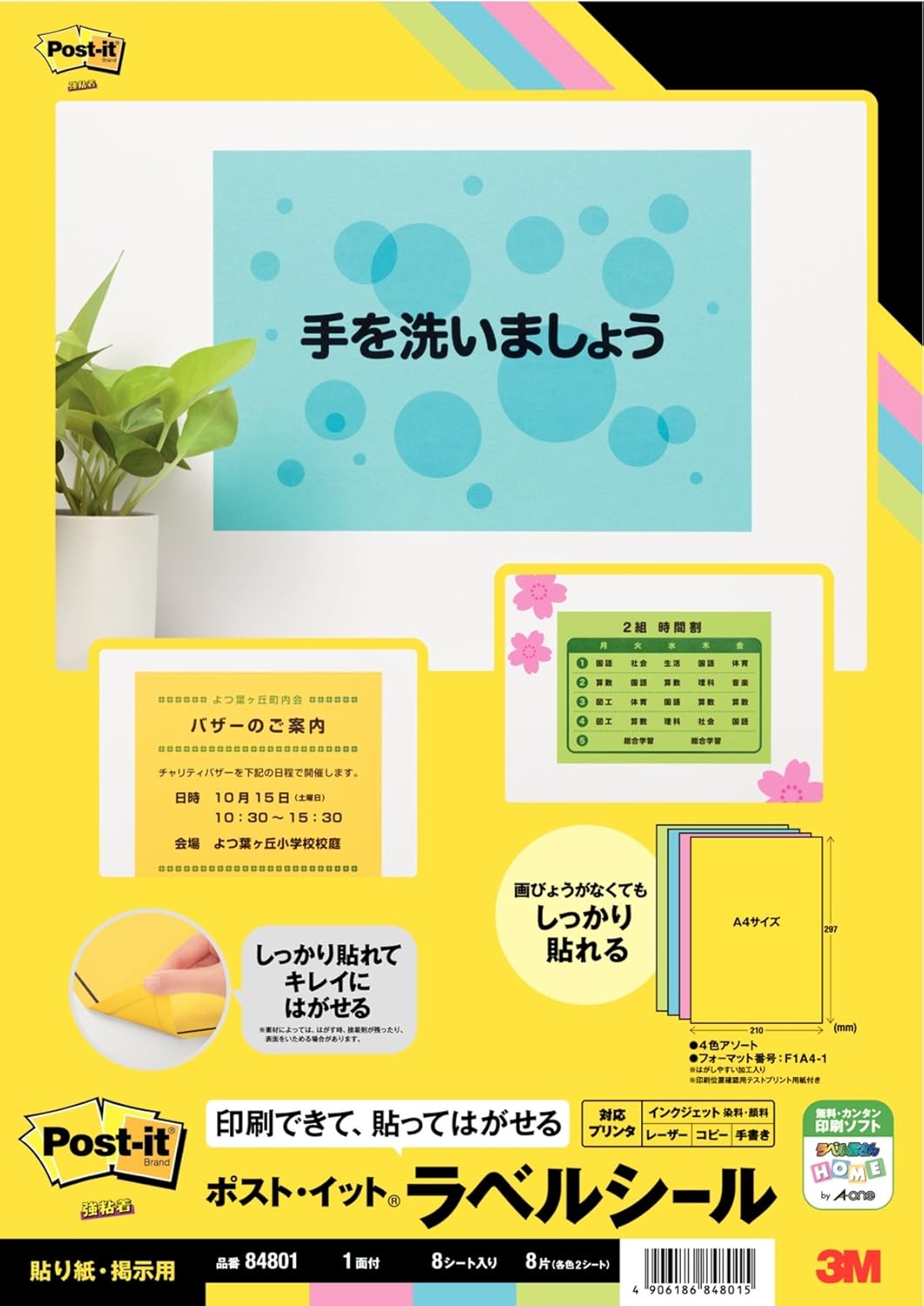 エーワン ポスト イット r ラベルシール プリンタ兼用 4色アソート ノーカット 8枚 各色2枚 84801 文房具 オフィス用品 文房具 オフィス用品 amazon