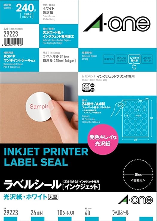 amazon エーワン ラベルシール インクジェット 光沢紙 a4 24面 丸型40mm 10シート 29223 文房具 オフィス用品 文房具 オフィス用品