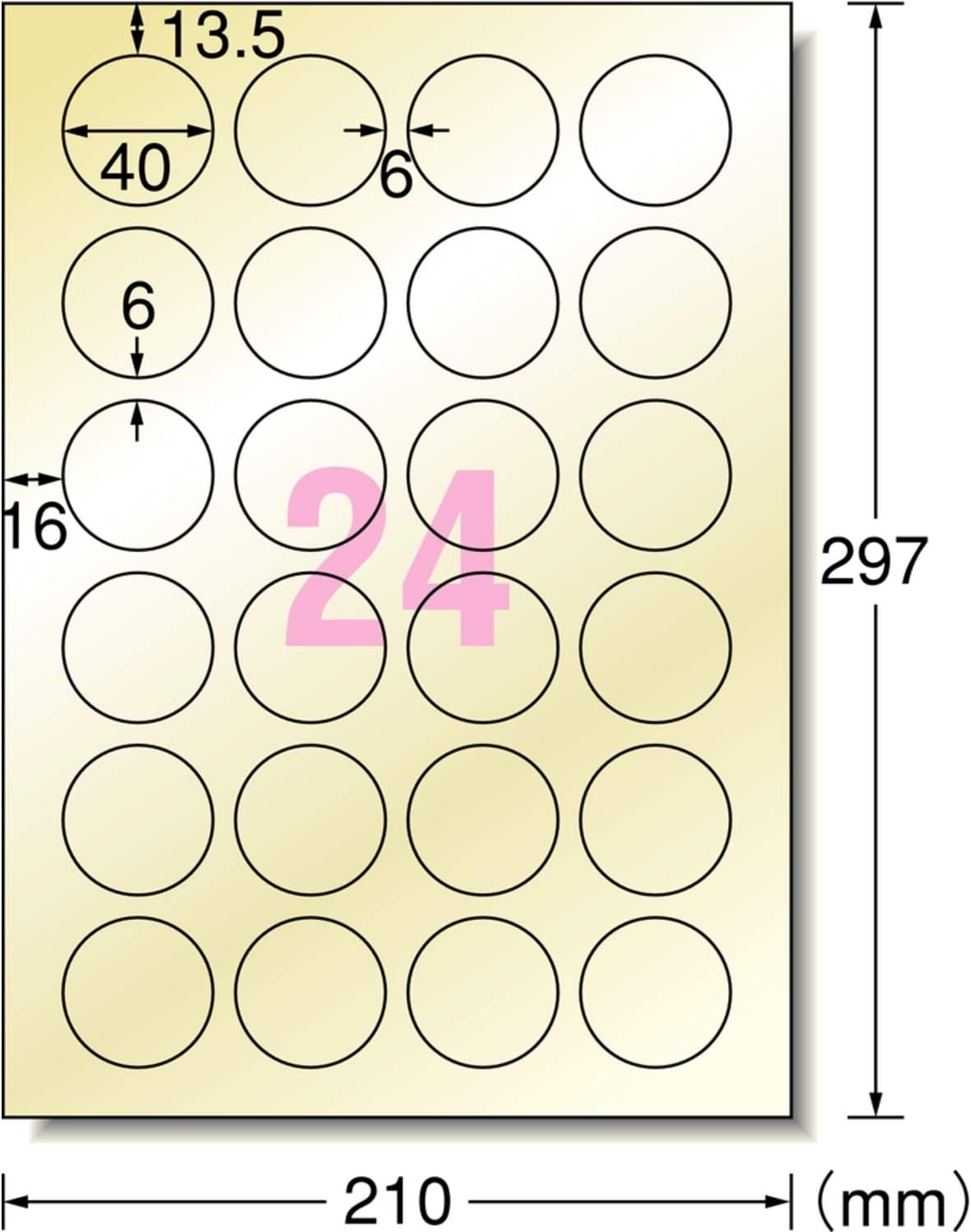 エーワン パッケージラベル 光沢フィルム ゴールド 24面 丸型 3シート 28292