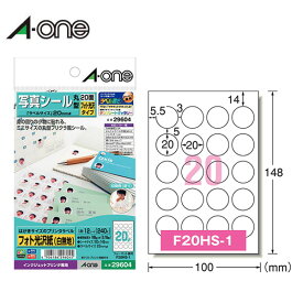 はがきサイズ 光沢 エーワン はがきサイズのプリンタラベル 29604 20面 丸型 12シート 240片 写真シール フォト光沢タイプ 光沢感のある紙ラベルを使用 a one ぶんぐる