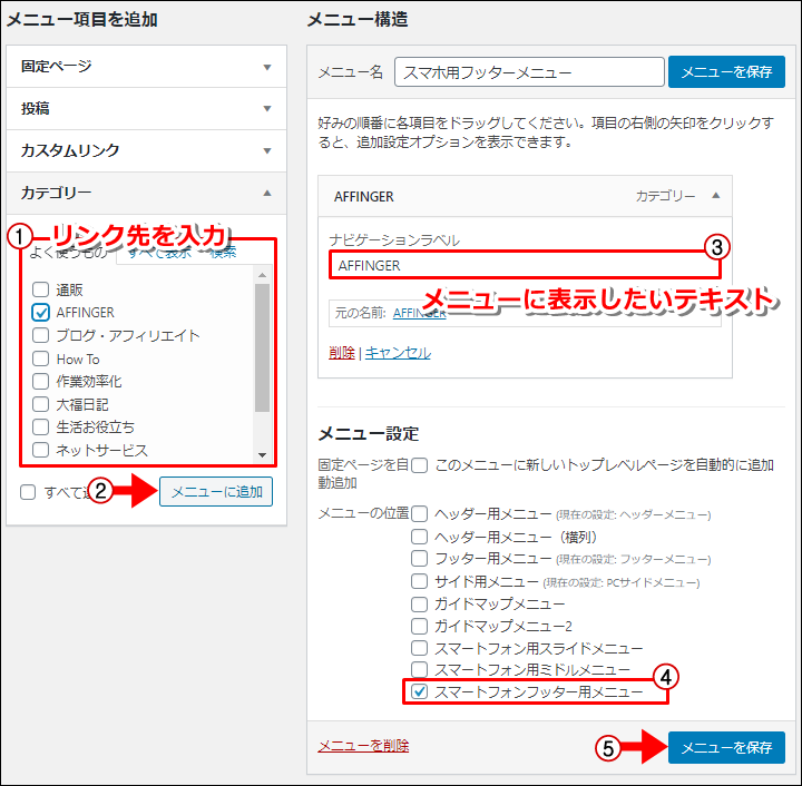 affinger5 wordpressヘッダーメニューの作り方と設定方法 スマホも ねこたろすブログ