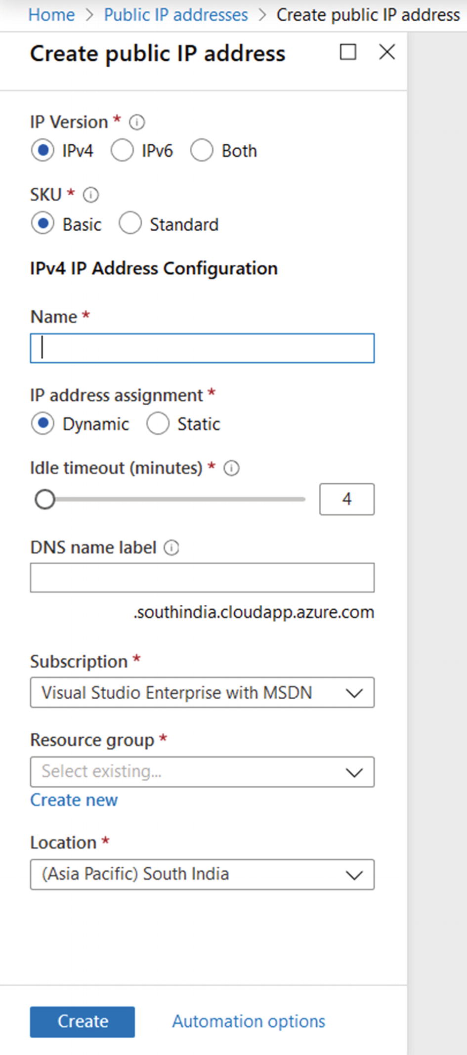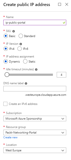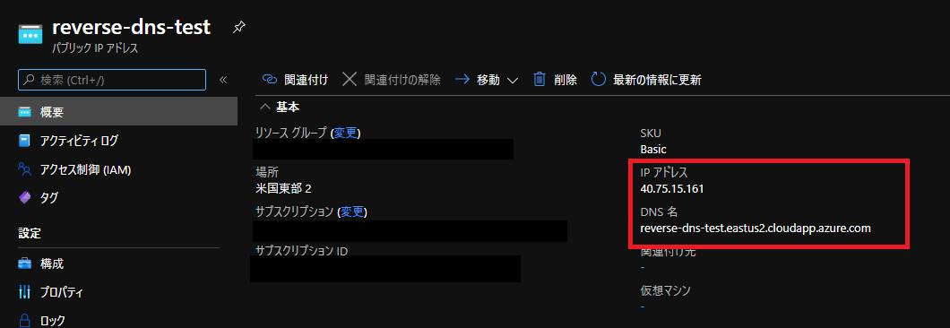 azure パブリックip dnsラベル