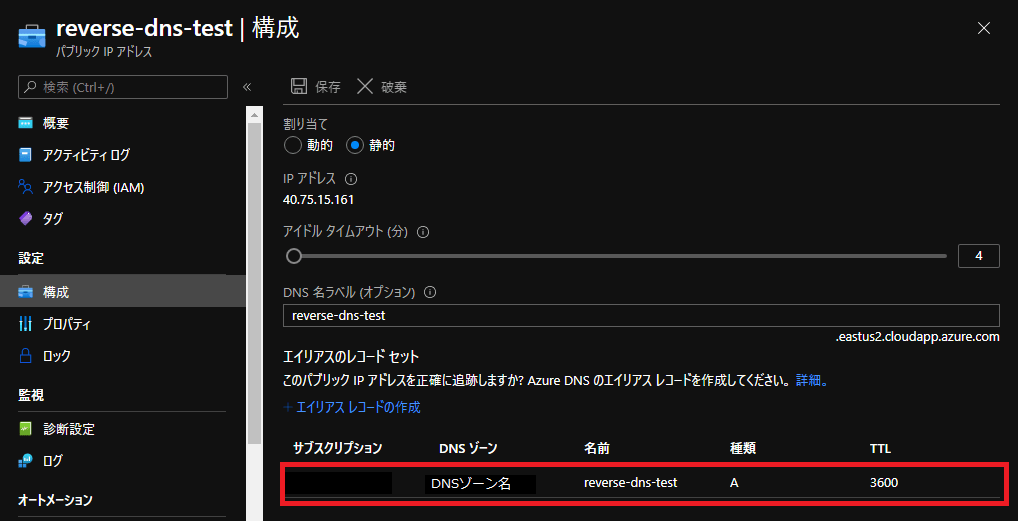 Azure パブリックip dnsラベル.