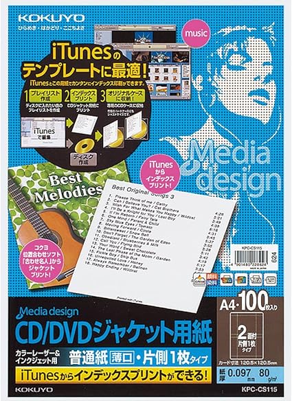 コクヨ cd dvdジャケット用紙 片側 100枚 kpc cs115