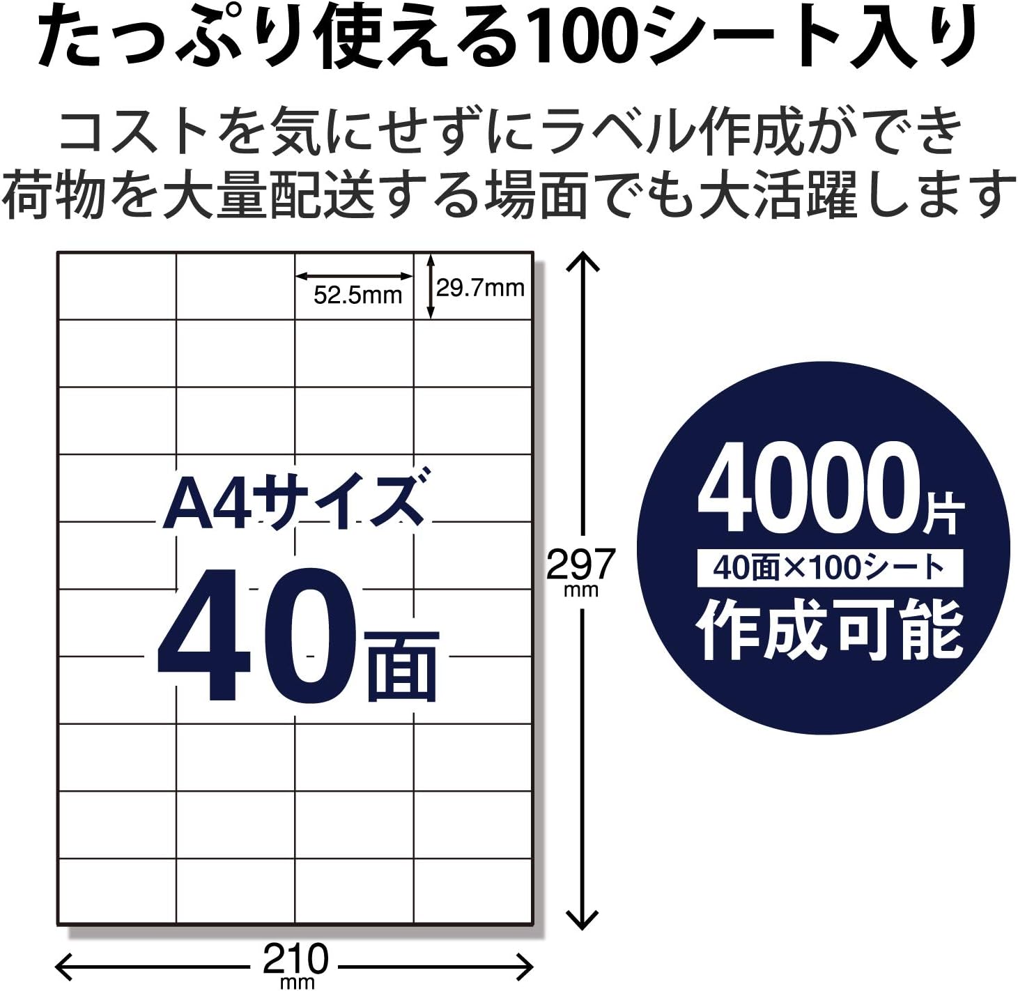 amazon fba対応 ラベルシール 強粘着タイプ 40面 a4サイズ 80枚入り ラベル用紙 文房具 オフィス用品